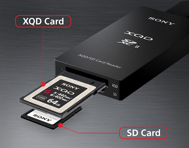 Đầu đọc thẻ nhớ XQD/SD Sony MRW-E90 cho độ tương thích tuyệt đối đối với các loại thẻ Sony XQD, và tương thích ngược với cổng USB 2.0