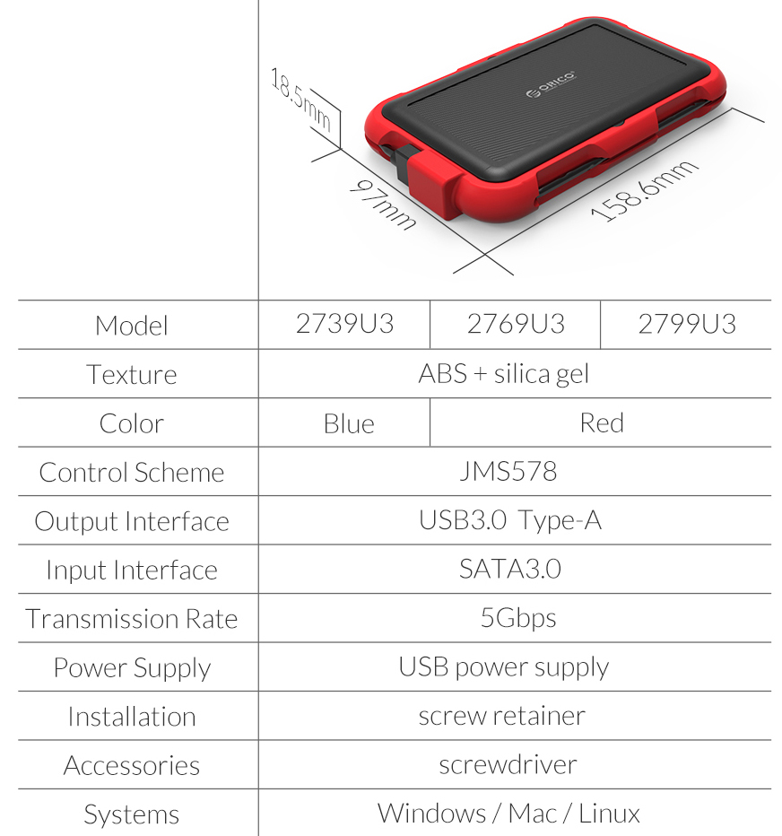 Với thiết kế cao cấp của mình, Box Orico 2769U3 SSD/HDD Sata 3 USB 3.0 sẵn sàng đồng hành cùng bạn chinh phục những môi trường ngoài trời.
