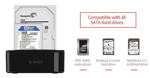 Dock ORICO 6228US3 tương thích với cả ổ cứng hoặc SSD 2,5 Inch hoặc 3,5 Inch một cách dễ dàng