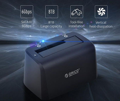 Dock ORICO 6519US3 đạt chuẩn tốc độ SATA III hỗ trợ tối đa 8 TB, không cần công cụ hỗ trợ lắp đặt và có thể tản nhiệt theo phương thẳng đứng