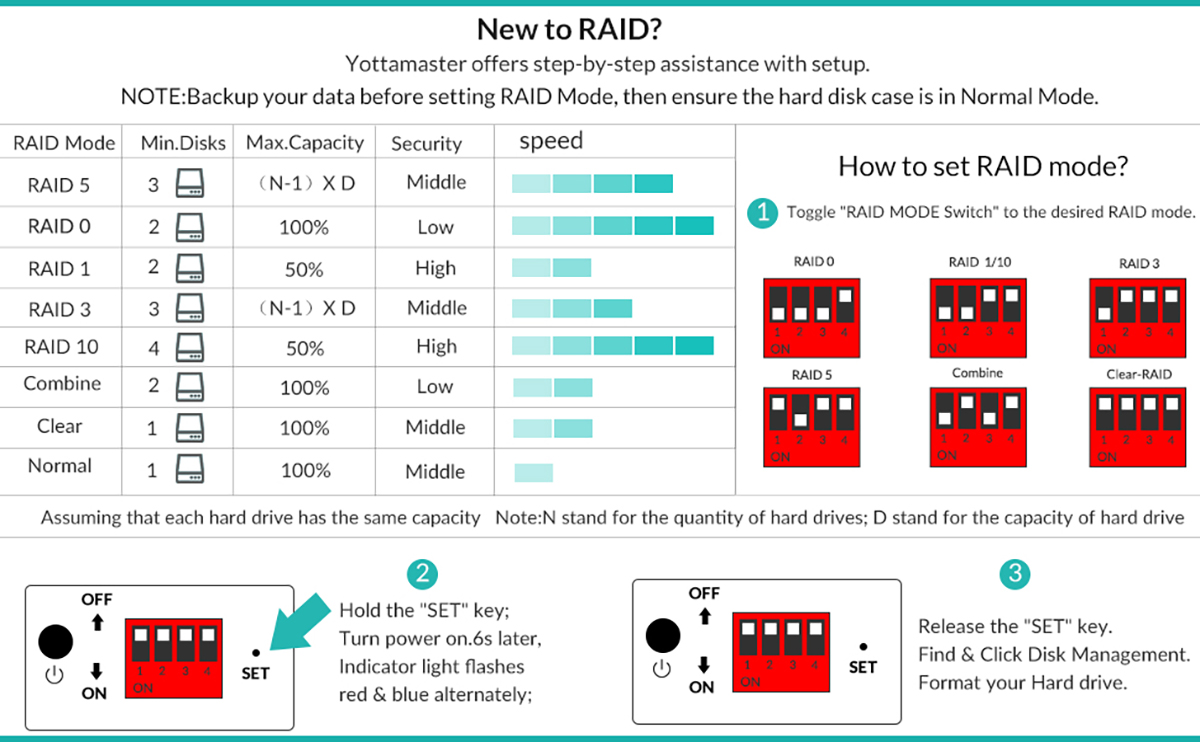 | Chế độ: | RAID 0, 1, 3, 5, 10, JBOD, CLONE |