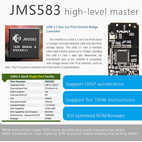 Box ổ cứng di động Kingshare KS-CNV02S được trang bị chip Controller JMS583 với các công nghệ mới nhất để cho băng thông cực cao.
