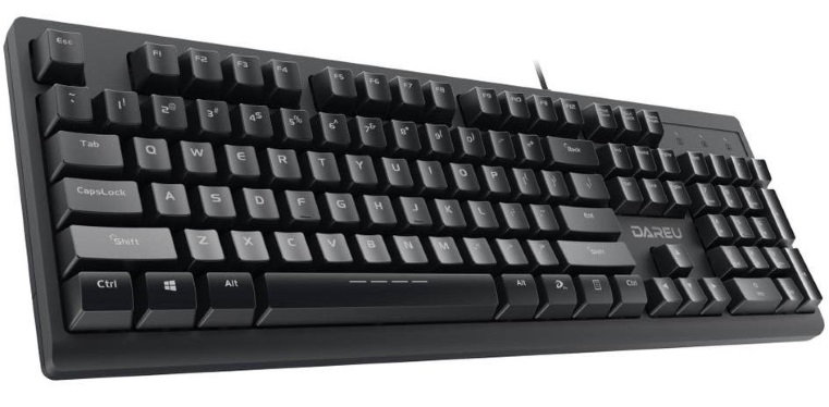 Bàn phím DareU LK135 có kích thước full-size gồm 104 phím có bề mặt được thiết kế khá giống những bàn phím cơ. Các phím của DareU LK135 cách nhau một khoảng vừa phải và chữ được in trắng nổi bật trên nền bàn phím đen hỗ trợ người dùng sử dụng tốt ngay cả trong môi trường ánh sáng yếu.