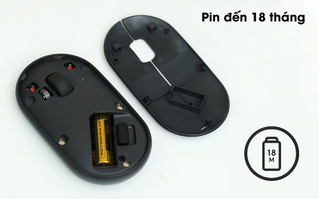 Pin đi kèm chuột không dây Logitech là viên pin AA có khả năng sử dụng từ 12-18 tháng (có thể thay đổi tùy điều kiện sử dụng). Logitech Pebble M350 tự động chuyển sang chế độ tiết kiệm pin khi bạn nghỉ ngơi.