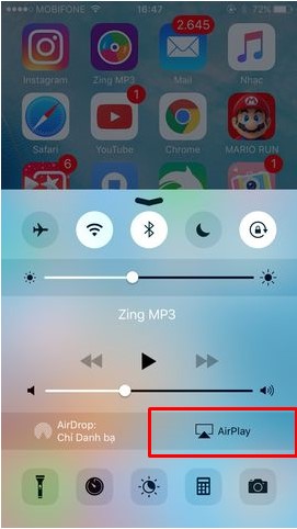 Trên điện thoại vuốt dưới lên, vào Airplay -> Mirascreen (nếu bật nút phản chiêu màn hình điện thoại sẽ hiện lên tivi, nếu tắt phản chiếu thì khi coi phim màn hình mới phát lên tivi)