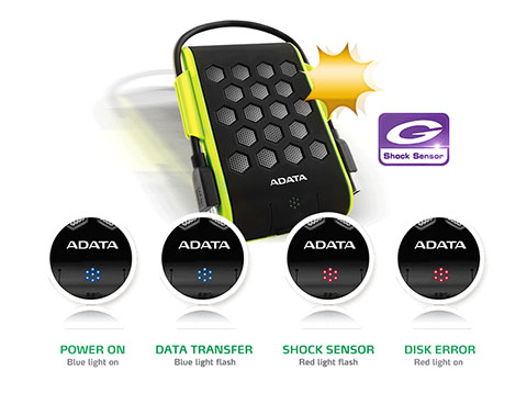 Cảm biến bảo vệ G-Shock giúp bảo vệ dữ liệu của bạn. Nếu ổ cứng di động ADATA HD720 của bạn bị rơi hay va chạm mạnh vào vật thể cứng, Cảm biến bảo vệ G-Shock sẽ tự động khởi động và hiển thị một đèn đỏ nhấp nháy. Khi va chạm kết thúc, một màn hình màu xanh nhấp nháy cho biết hoạt động bình thường đã được tiếp tục.