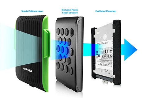 Ổ cứng di động ADATA HD725 có thể chống va đập, rơi và rung lắc nhờ khả năng chống va đập cấp quân sự. Thiết bị đã được ADATA thử nghiệm với tiêu chuẩn quân sự Hoa Kỳ MIL-STD-810G 516.6 và có thể chịu được lực khi rơi từ độ cao 1,8 m.