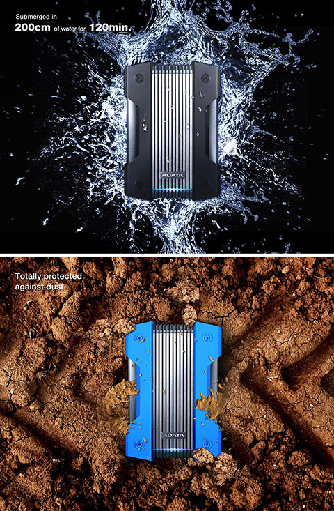 Đôi khi sẽ xảy ra những tình huống bất ngờ và ổ cứng di động ADATA HD830 luôn sẵn sàng trong các tình huống đó. Ổ cứng di động ADATA HD830 có khả năng chống bụi và chống nước, được đánh giá vượt tiêu chuẩn IP68. Nếu chẳng may lỡ tay đánh rơi ổ cứng di động ADATA HD830 vào nước, bạn cũng không cần lo lắng. Ổ cứng này có thể chống chịu được khi nhúng vào nước có độ sâu 2 m trong 120 phút.