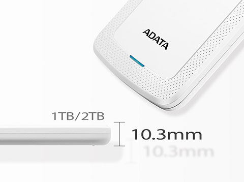 Chỉ dày 10,3 mm*, ổ cứng ngoài ADATA HV300 có độ mỏng tuyệt đối. Ổ cứng này có thể trượt dễ dàng vào các ngăn va-li và ba lô, lý tưởng cho những người thường xuyên di chuyển. Với dung lượng lưu trữ lên tới 5TB, bạn có thể tha hồ lưu phim ảnh và tất cả những dữ liệu khác trên ổ cứng này.
