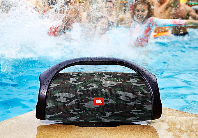 Loa Bluetooth JBL Boombox tích hợp tính năng IPX7 chống thấm nước cực chất, bạn có thể thoải mái mang đi bất cứ nơi đâu bất chấp mọi điều kiện thời tiết.