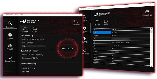 Phần mềm ROG SSD Dashboard cung cấp thông tin tổng quan đầy đủ về nhiệt độ thiết bị, trạng thái lưu trữ và hơn thế nữa.