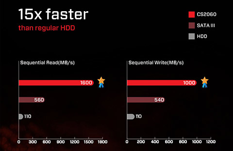 Với tốc độ đọc siêu tốc đạt 1,600 MB/s và tốc độ ghi lên tới 1,000 MB/s, sản phẩm SSD PNY CS2060 M.2 PCIe NVMe Gen 3x2 giúp bạn copy hay truyền files lớn chỉ trong vài giây.