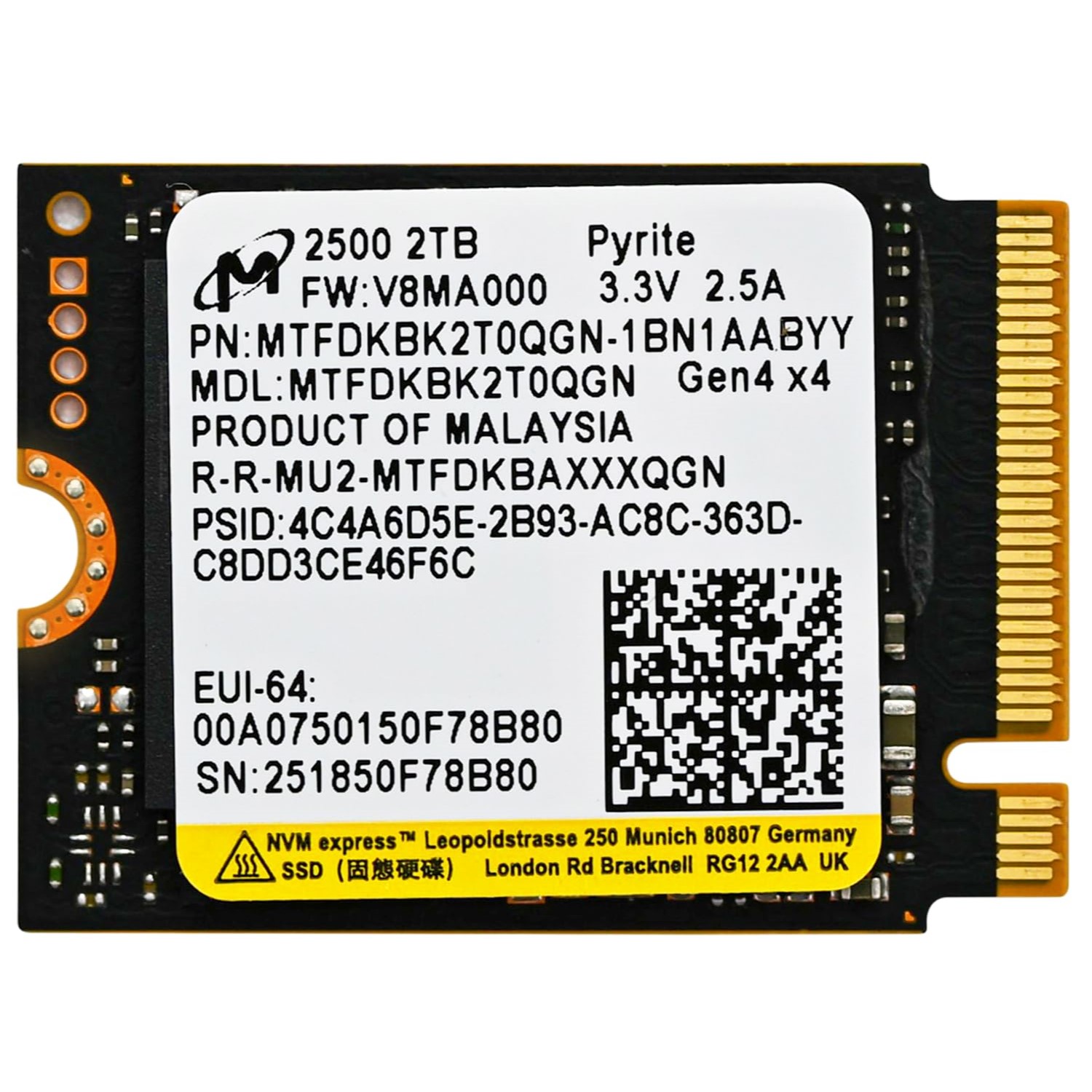 Mặc dù là một ổ cứng QLC, SSD Micron 2500 M.2 2230 cung cấp hiệu suất nghiêm túc, đánh bại các đối thủ cạnh tranh dựa trên công nghệ TLC và QLC trong cả các tác vụ đọc ghi tuần tự và ngẫu nhiên. Cụ thể, phiên bản đạt tốc độ đọc tuần tự lên tới 6,600 MB/s và tốc độ ghi tuần tự 3,650 MB/s, trong khi tốc độ đọc ngẫu nhiên đạt 530,000 IOPS. Dòng Micron 2500 được ghi nhận là ổ cứng QLC đầu tiên trên thế giới tiệm cận mức hiệu suất tối đa của giao tiếp PCIe Gen4 với tốc độ đọc tuần tự có thể lên tới 7,100 MB/s ở các phiên bản dung lượng cao hơn. So với các đối thủ, nó cải thiện hiệu suất đọc tuần tự lên tới 48% so với TLC và 72% so với QLC, mang lại sự vượt trội rõ rệt.