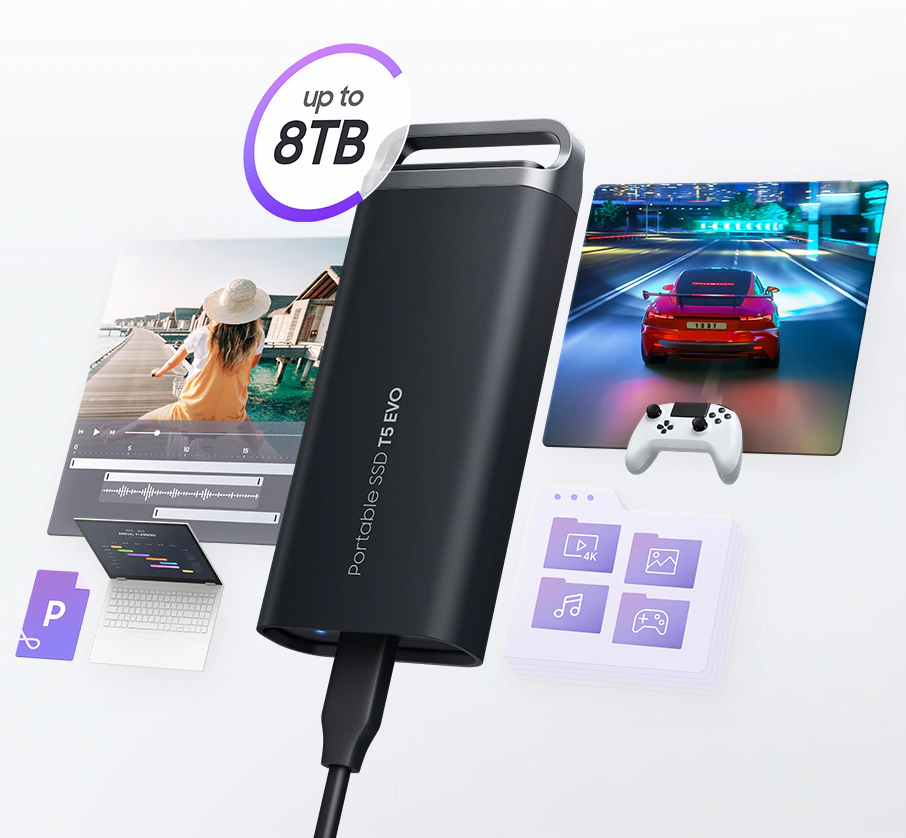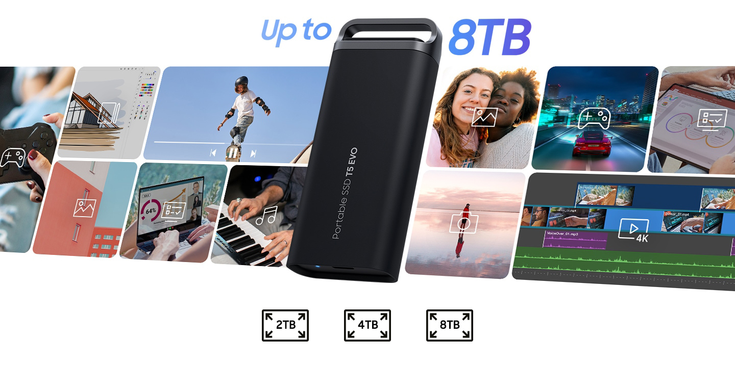 Ổ cứng di động SSD T5 EVO của Samsung có dung lượng lưu trữ khủng lên đến 8TB. Cho dù bạn đang làm việc, sáng tạo, học tập, chơi game hay sao lưu dữ liệu, luôn có dung lượng sẵn sàng để đáp ứng mọi nhu cầu của bạn.