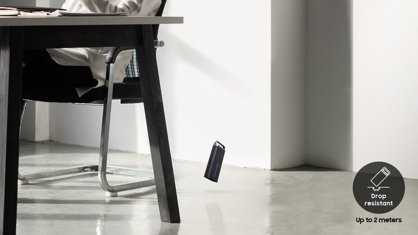 Ổ cứng di động SSD Samsung T5 EVO được thiết kế để bảo vệ dữ liệu khỏi va đập bên ngoài với khả năng chống rơi từ độ cao lên đến 2 mét và được hỗ trợ bảo mật bằng mật khẩu được mã hóa AES 256-bit. Bạn có thể yên tâm thư giãn và bảo vệ tài sản quý giá của mình.