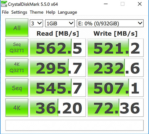 | Tốc độ truyền đọc/ghi: | 550/~500 MB/s |