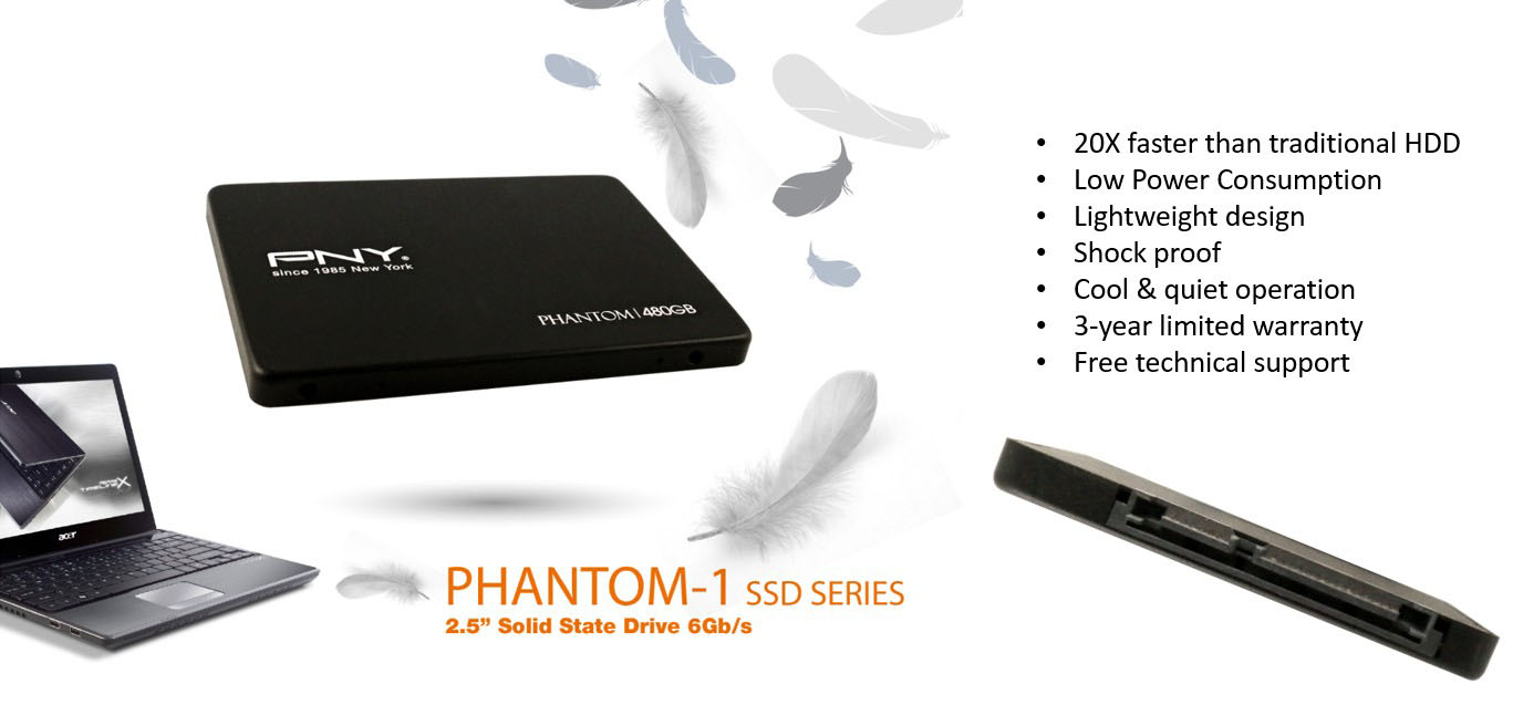 ổ cứng SSD PNY Phantom 1 mạnh hơn gấp 30 lần so với ổ cứng HDD, đáp ứng tất cả các nhu cầu của bạn và chịu được nhiệt độ khắc nghiệt. Các Chíp nhớ NAND siêu bền sẽ giúp bảo vệ dữ liệu của bạn ngay cả khi máy tính của bạn bị rơi.