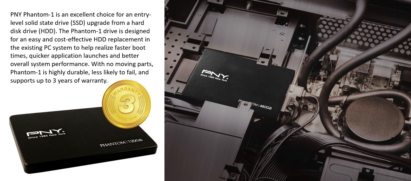 Với tiêu chuẩn độ bền nghiêm ngặt, ổ cứng SSD PNY Phantom 1 được chứng minh chất lượng với chế độ bảo hành ba năm của PNY. Ngoài ra, đội ngũ hỗ trợ kỹ thuật tại Mỹ luôn hỗ trợ trả lời câu hỏi của bạn 24/7.