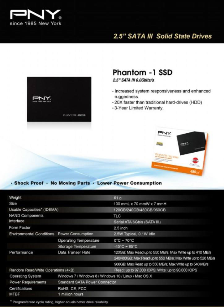 Sản phẩm ổ cứng SSD PNY Phantom 1 được trải qua các thử nghiệm về độ bền khắt khe nhất trong ngành công nghiệp bộ nhớ, chịu được hàng trăm bài kiểm tra trình độ chuyên môn và hơn 10.000 giờ thử nghiệm. Mỗi SSD được đảm bảo để đáp ứng các yêu cầu cao nhất của những ứng dụng đòi hỏi khắt khe nhất.