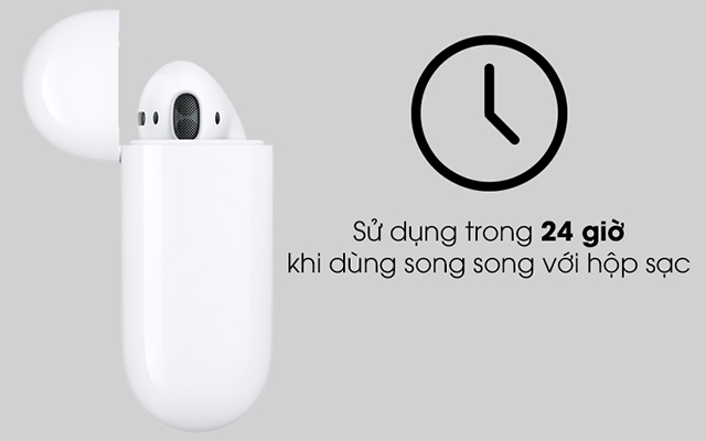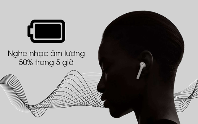 Một trong những điểm nổi bật của AirPods 2 so với AirPods đời đầu nằm ở thời lượng pin xuất sắc, Apple đã mang tới những cải tiến hiệu quả để giúp AirPods 2 có thời lượng pin lên tới 4 tiếng rưỡi.