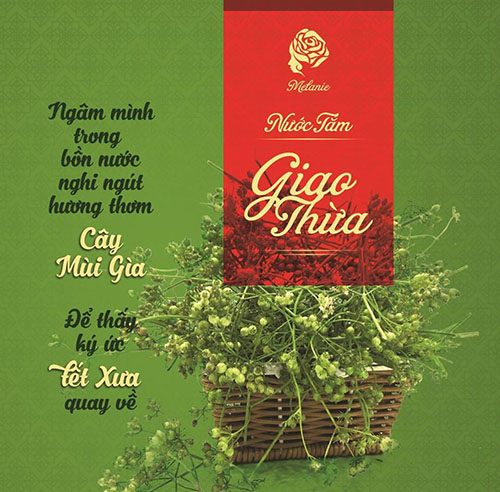 Được chưng cất từ 3 kg mùi già trồng hữu cơ tại cánh đồng 1000 ha trên dòng sông Bưởi, kết hợp cùng tinh dầu sả chanh. Mỗi chai nước tắm mùi già Mộc Hương có mùi thơm ngát, nồng nàn và đúng phong vị Tết truyền thống từ bao đời của người Việt.