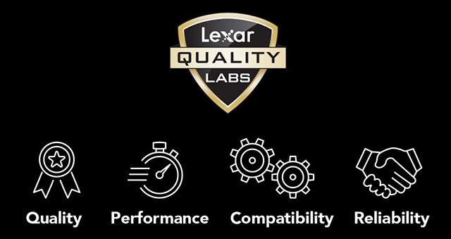 Tất cả các sản phẩm Lexar, đầu đọc thẻ, ổ đĩa flash USB đều được trải qua tất cả các thử nghiệm rộng rãi trong Lexar Quality Labs với hơn 1.100 thiết bị kỹ thuật số hiện đại nhất để đảm bảo hiệu suất, chất lượng, khả năng tương thích và độ tin cậy.