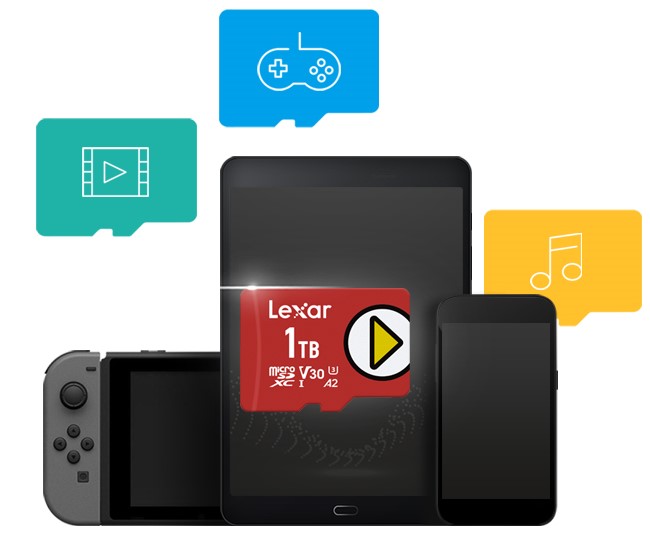 Thẻ nhớ microSD Lexar PLAY UHS-I rất tuyệt vời để sử dụng với máy tính bảng hoặc điện thoại thông minh của bạn, tải về hoặc lưu tất cả các tập tin giải trí yêu thích của bạn một cách nhanh chóng, bao gồm cả những bộ phim chất lượng cao nhất, hình ảnh, và các bài hát. Với dung lượng lớn lên đến 1TB bạn có thể lưu tất cả các tập tin đa phương tiện yêu thích của mình. Lý tưởng cho các thiết bị chơi game di động, điện thoại thông minh và máy tính bảng.