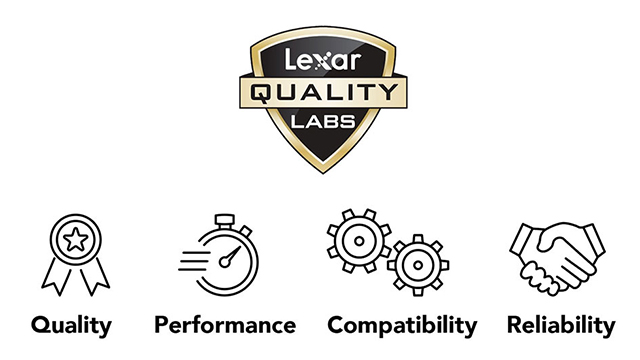 Tất cả các sản phẩm Lexar, đầu đọc thẻ, ổ đĩa flash USB đều được trải qua tất cả các thử nghiệm rộng rãi trong Lexar Quality Labs với hơn 1.100 thiết bị kỹ thuật số hiện đại nhất để đảm bảo hiệu suất, chất lượng, khả năng tương thích và độ tin cậy.