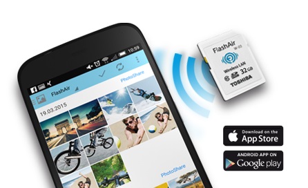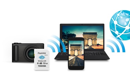 - Thẻ nhớ Toshiba FlashAir hỗ trợ đến 7 kết nối wifi cùng lúc thông qua giao diện trình duyệt web hoặc ứng dụng FlashAir hỗ trợ trên IOS và Android.