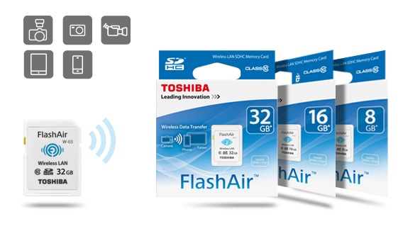 - Dòng thẻ FlashAir ™ SD được thiết kế dành cho những người đam mê video và hình ảnh muốn có công nghệ mới nhất. Được trang bị trang bị một chip phát wifi tích hợp ngay vào trong thẻ. Chức năng này cho phép bạn xem và truyền video và hình ảnh giữa các thiết bị mà không cần tháo thẻ, các thiết bị thông minh có kết nối wifi sẽ dễ dàng truy cập và thẻ FlashAir để download ảnh và video.