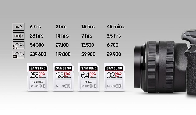 Thẻ nhớ SD Samsung Pro Plus For Professionals có dung lượng từ 32GB đến 256GB, đáp ứng mọi nhu cầu lưu trữ của bạn. Với sự lựa chọn đa dạng này, bạn luôn có thẻ SD phù hợp với nhu cầu của mình.