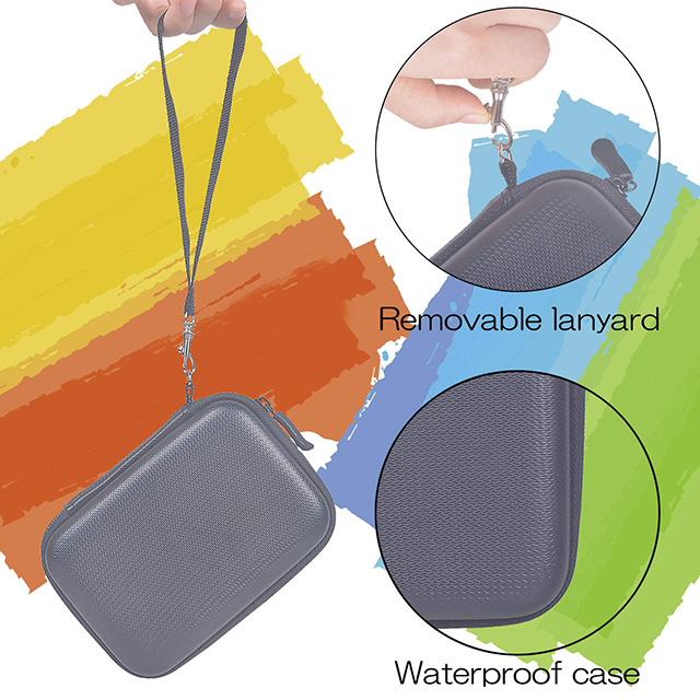 Hộp đựng ổ cứng di động với dây đeo cho phép treo vào cặp, ba lô, dây buộc có thể tháo rời, có thể giấu bên trong hộp, sẽ không ảnh hưởng đến việc sử dụng của bạn.