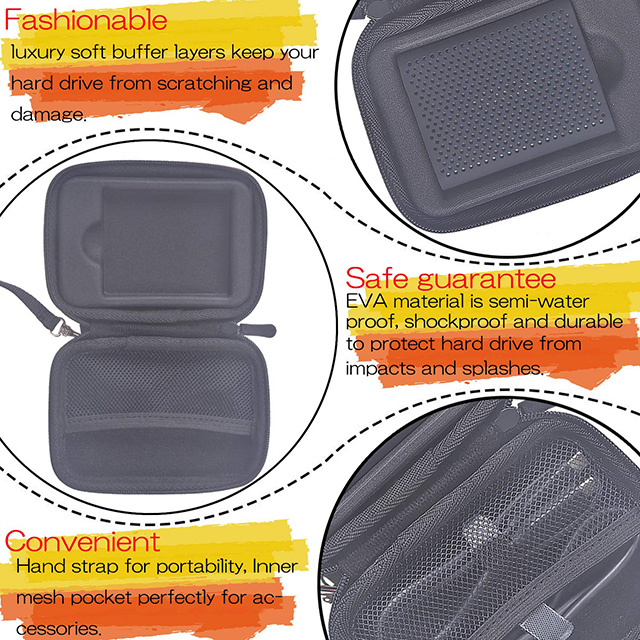 Hộp đựng ổ cứng di động giúp chống nước (không thấm nước) cản trở nước và hơi hiệu quả, đừng lo lắng về việc thiết bị và phụ kiện của bạn bị ướt do nước bắn hoặc mưa.