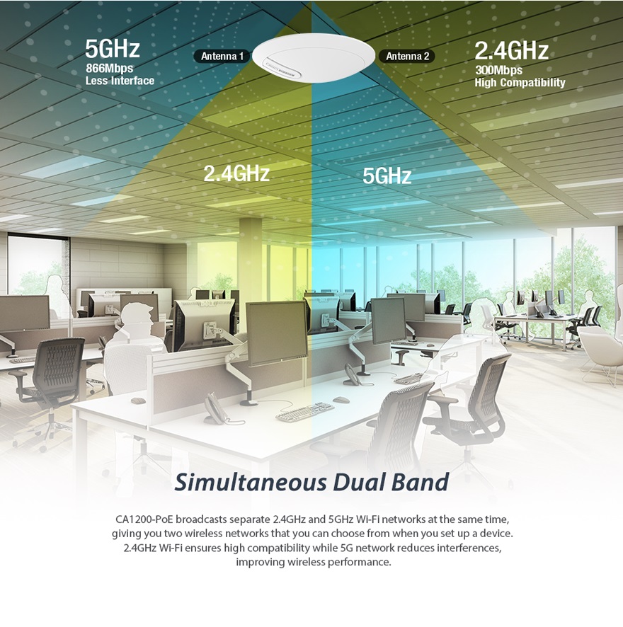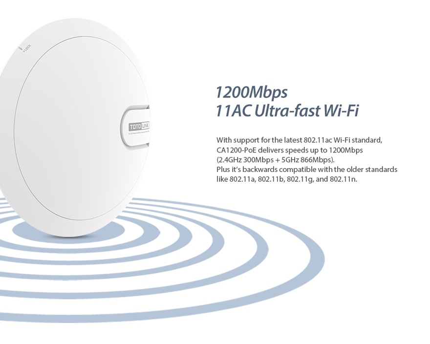 | Tốc độ truyền tải: | 5GHz: 867Mbps; 2.4GHz: 300Mbps |